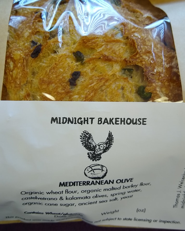 Midnight Bakehouse serves homemade organic artisan bread and pasta. Choose from French, Mediterranean olive, garlic rosemary and cinnamon raisin bread. Thinking about dinner? Try their dried vegan pasta.