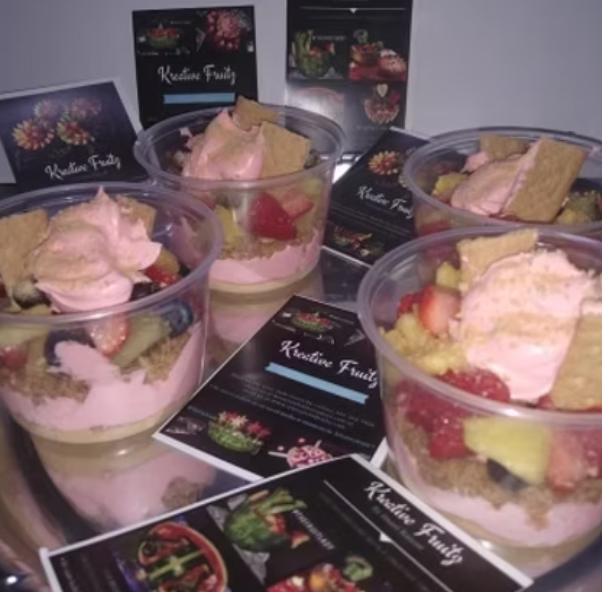 Kreative Fruitz is a unique fresh fruit art company that specializes in carving fruits. If you can imagine it, they can carve it and elevate events of all kinds. They also offer fresh fruit workshops/events/parties to unleash your creativity through our fruity experience! Kreative Fruitz has charcuterie boxes, fruit cups, fruit cones, and even fruit nachos.