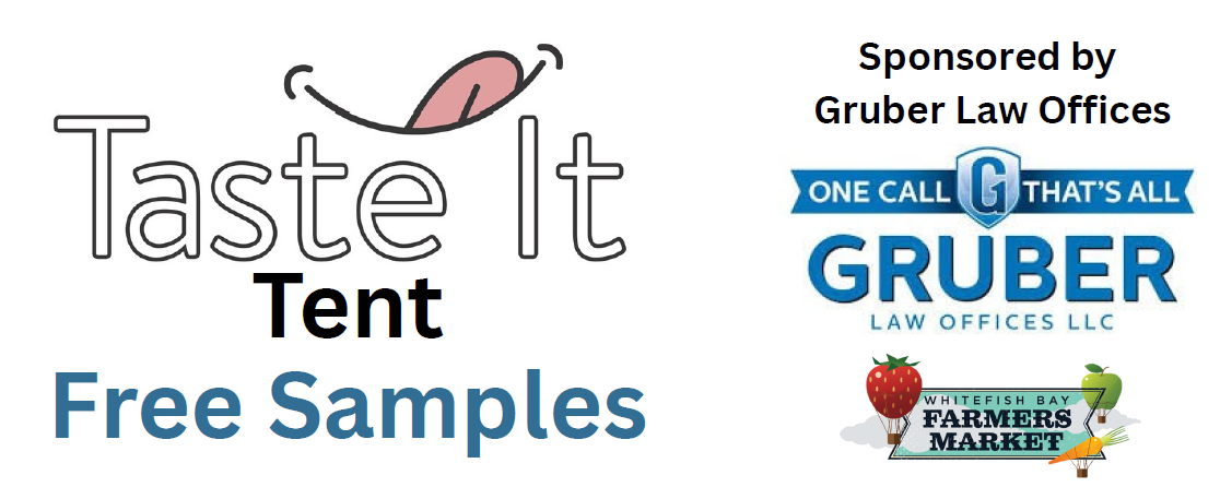 We are SO EXCITED to debut our Taste It Tent, sponsored by Gruber Law Offices! Stop by the The Taste It Tent for a free sample of food grown or made by our local vendors. The tent is open for Saturday morning markets and the Tasty Tuesday Farm Stand.